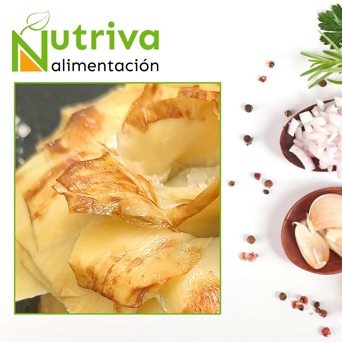 La flor de alcachofa confitada de Nutriva Alimentación (Productos Vegetales Confitados) es una preparación sofisticada y deliciosa que resalta la textura y el sabor único de la alcachofa. Para obtener este plato, las alcachofas se pelan cuidadosamente, eliminando las hojas exteriores hasta dejar solo el corazón y la base, que es donde se forma la «flor» al abrirse durante la cocción.