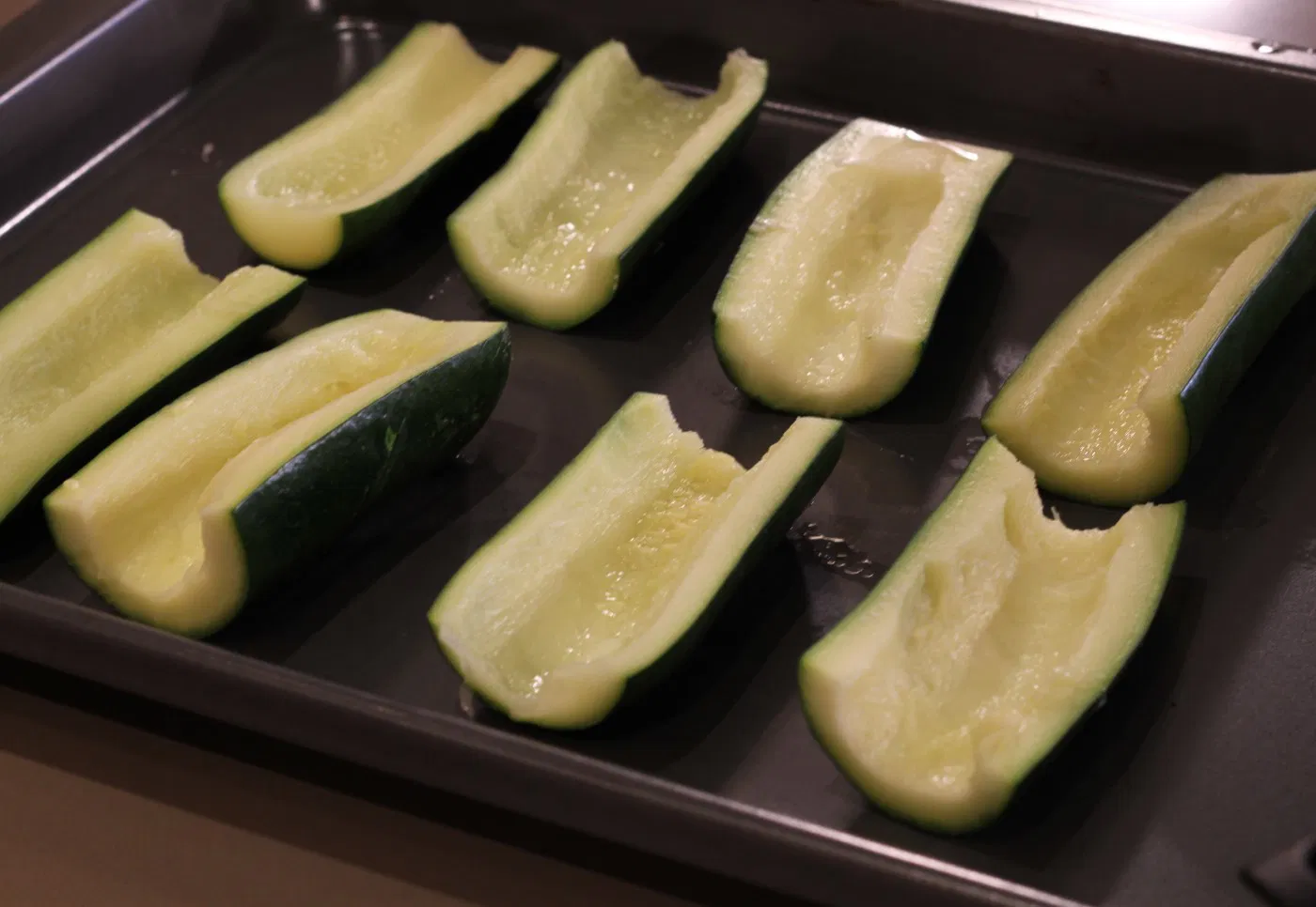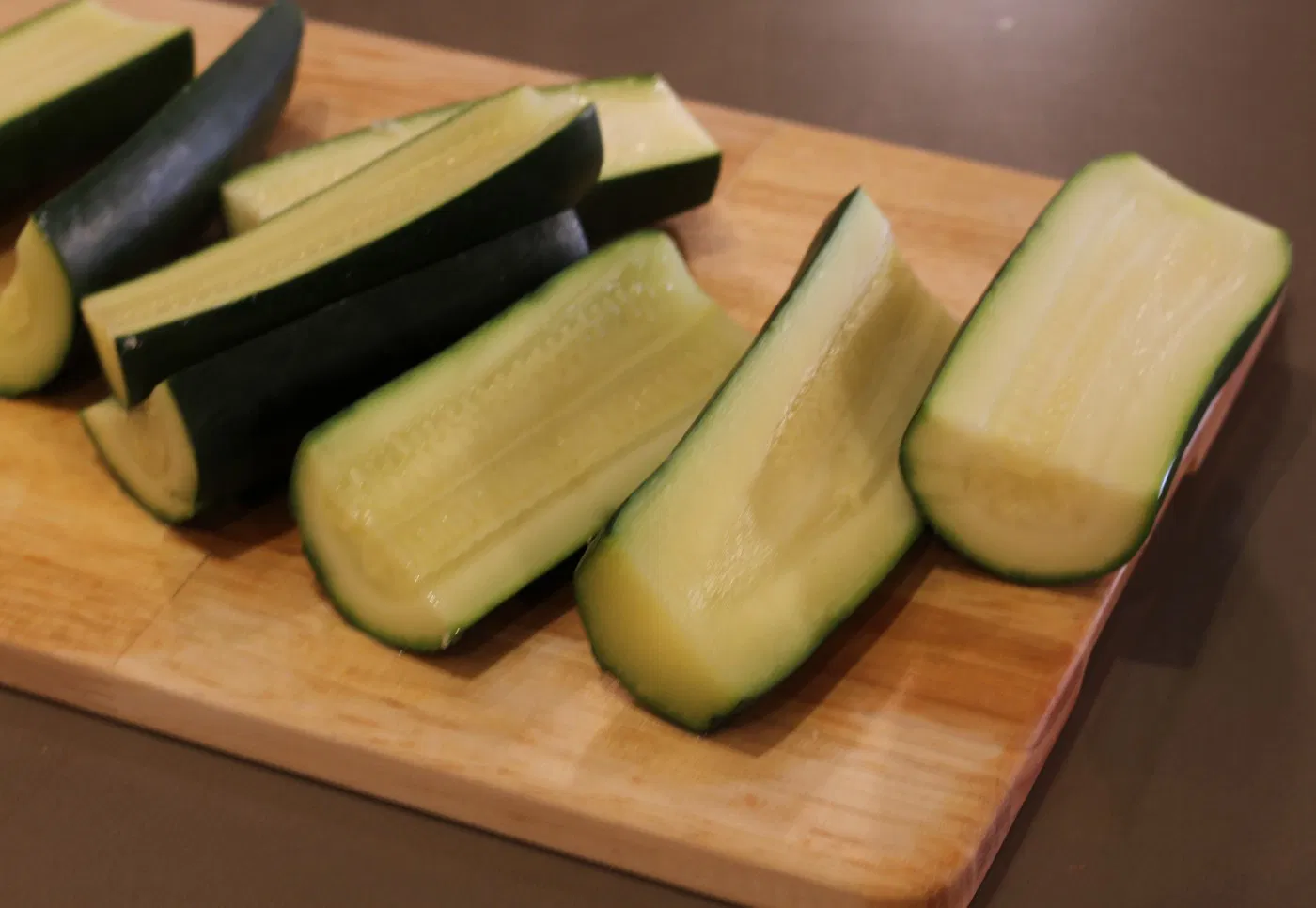 Para preparar los calabacines tenemos varias posibilidades, normalmente en casa los partimos en dos de manera longitudinal pero últimamente y por el tamaño de los calabacines que me regala mi padre.