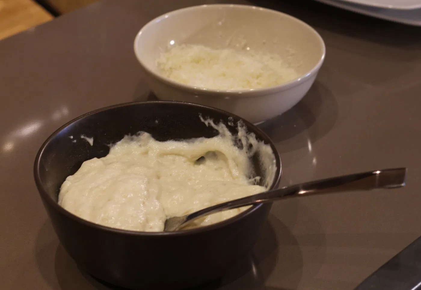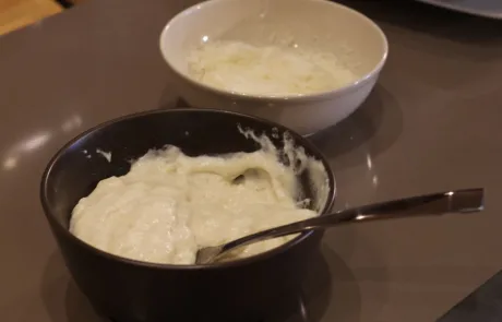Preparamos la bechamel. Ponemos el horno a 200º C para que esté caliente cuando metamos la fuente refractaria con los calabacines.