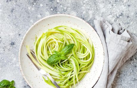 • 6. En una ensaladera, vierte las tiras de calabacín y añade la salsa de pesto.